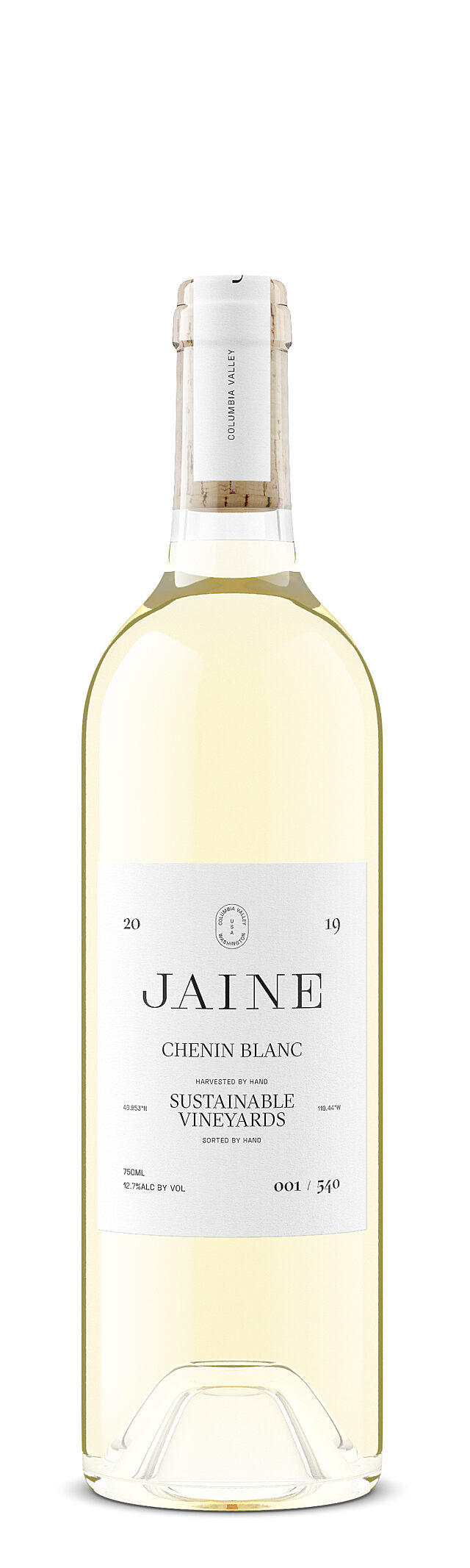 The 2019 Jaine Chen Blanc was crafted from one small vineyard parcel in the Columbia Valley, located just outside of the tri-cities on the east side of the Columbia River. The vineyard is fully sustainable and uses organic farming methods, whenever possible. The vineyards were hand-harvested late in the evening of September 17th. Upon arriving in the winery, the vineyard lot was hand-sorted and whole-cluster pressed before settling for 48 hours. The grapes were then fermented in a concrete egg before being transferred into neutral French oak barrels for aging. Over the course of these 9 months, this wine was stirred once a month and individually evaluated over 40 times by our winemaking team. It was finally bottled on July 23, 2020 and only 45 cases were made.